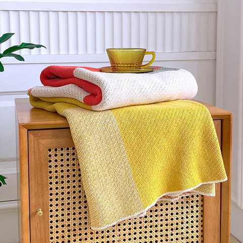 Y-W高級北欧ジャカードコットンニットブランケットソリッドパターン環境にやさしいソファとベビーブランケット家庭用旅行用