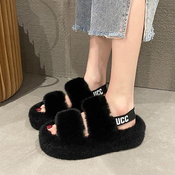 Y-Z thoải mái mờ Fluffy Dép mờ slide siêu mềm Slip-On nhà trong nhà Faux lông mở ngón chân dép